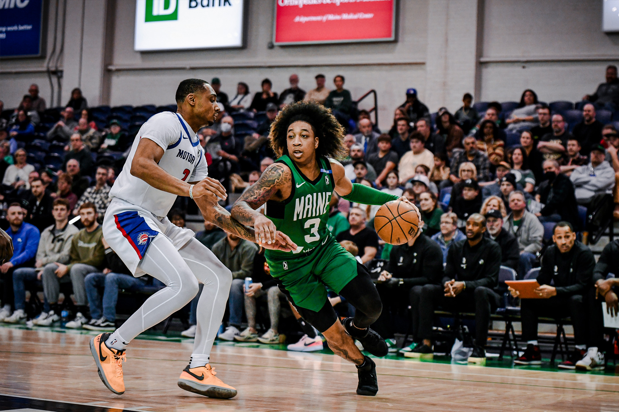 The two sides continued trading leads as the first half developed, amassing eight lead changes and five ties by the seven-minute mark of the second. The scoring was evenly balanced between twos and threes for both sides – about halfway through the second, Maine gained a slight edge thanks to efficient, high-volume shooting from long-range, taking a 45-44 lead off a triple from Brandon Slater. Boeheim caught fire to end the quarter, nailing a transition three to regain the lead for Motor City, already the 16th lead change of the night. The Syracuse product finished with 21 points on 5-8 from deep in the first half, almost solely powering the Cruise offense along with Simpson’s 12 points and six assists. Both teams shot well above 50% from the field in the opening two quarters, with Maine shooting 47.4% on nine made threes, but went into the half trailing 61-55 after being outrebounded 20-16 and allowing 15 points off eight turnovers.