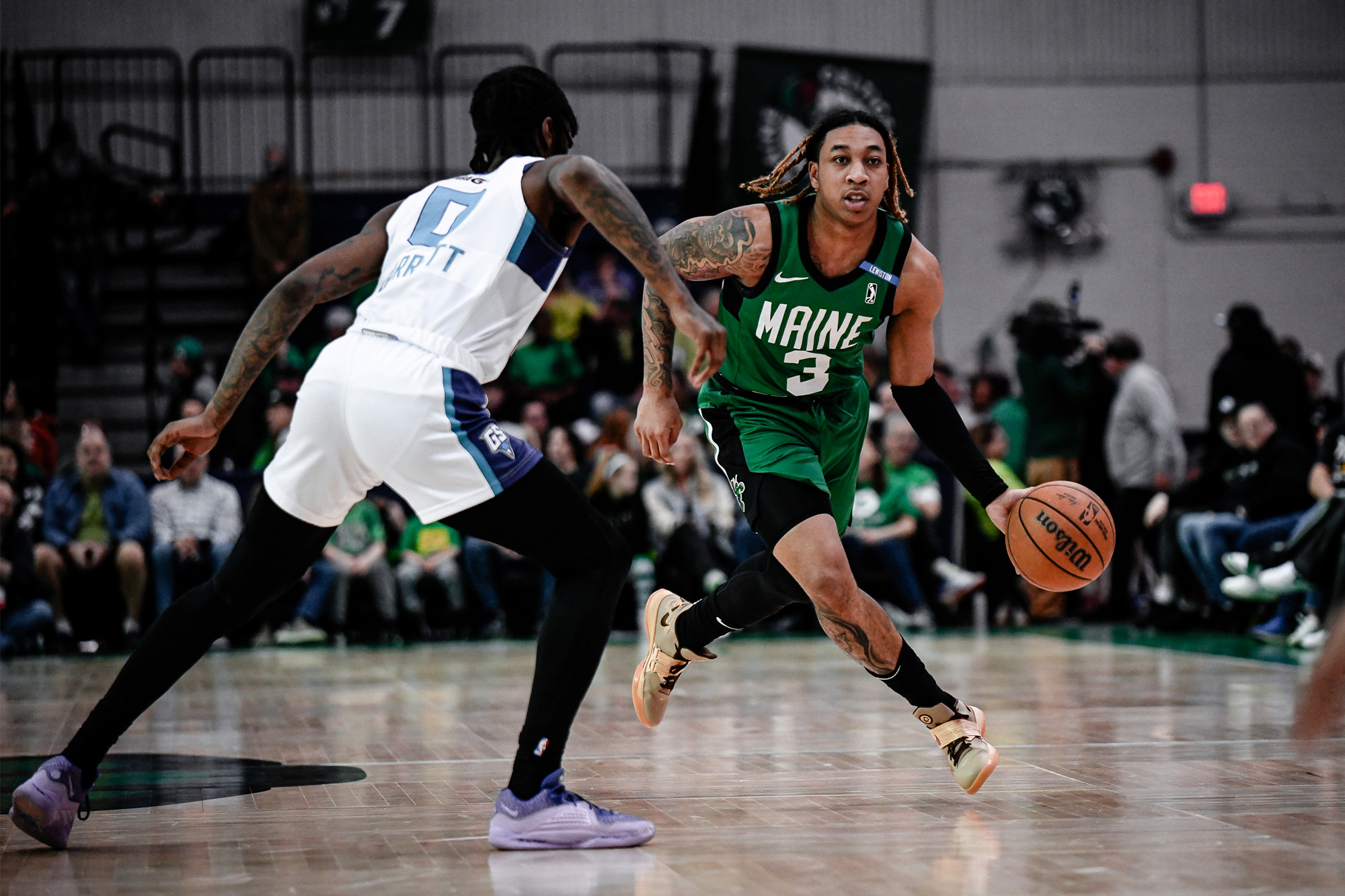 The Celtics pushed the lead into double digits as the second quarter opened. Steward hit a 13-footer and then found Kylor Kelley for a pair of easy finishes, quickly stretching the lead to 15-points, 36-21 just after the nine-minute mark. Snell and Peterson each knocked down a three after that to extend Maine’s lead even further – the Celtics came out of the gates highly energized after some much-needed off days, and eclipsed Thursday’s six made 3-pointers within the first half this afternoon. The Swarm got within 20 a few times but after a strong close to the frame, Maine led 58-35 at the break. The Celtics limited Greensboro to just 29.7% shooting in the first two quarters.
