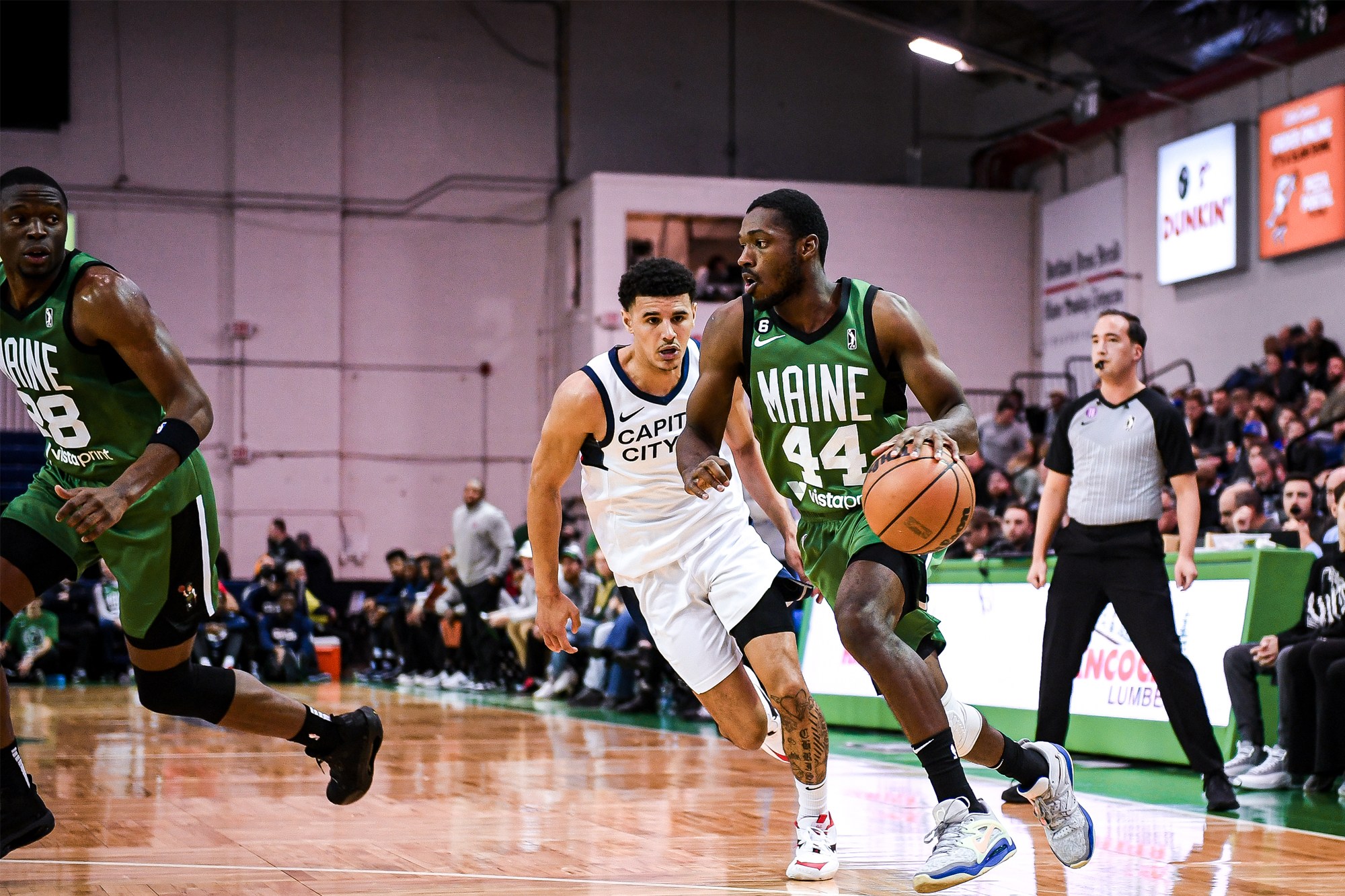 Šamanić and Kabengele’s interior offense was working as the second quarter got going, helping the Celtics maintain their lead until Carey heated up for the Go-Go. He would tally 13 points and nine rebounds before the half ended, and any Celtic not named Lindsey struggled to make shots of their own. Lindsey threw it down in transition to bring Maine within one and give himself 18 first-half points on 7-8 shooting before Šamanić’s tip-in in the closing seconds put the Celtics ahead, 50-49 heading into the locker room.