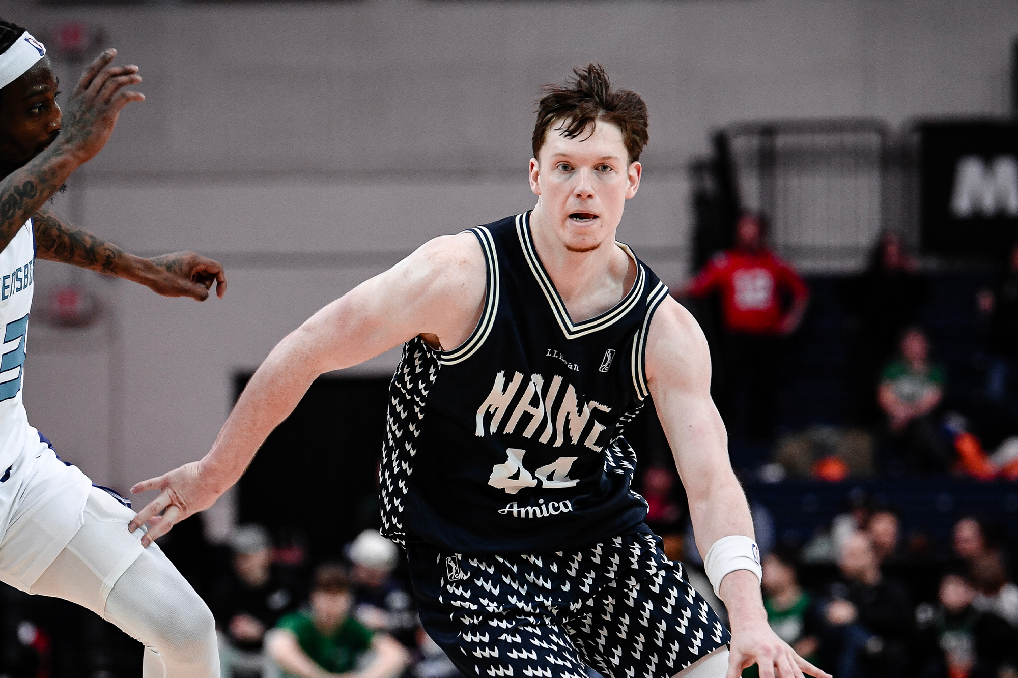 Greensboro got off to a hot start. The Swarm made 7 of their first 8 shots and, with 7:41 to go in the first quarter, jumped out to a 16-9 lead, forcing a Maine timeout. Evbuomwan helped the Celtics rally back. The forward scored 11 of Maine’s first 21 points, and with 5:36 to go in the first, assisted on a Kendall Brown three, which trimmed the deficit to 23-21. Evbuomwan finished the first quarter with 19 points and four assists. But behind 87% (20-23) shooting from the floor as a team, 17-17 shooting on two-pointers and 11 points from both Hall and McNeeley, Greensboro took a 44-38 lead into the second.